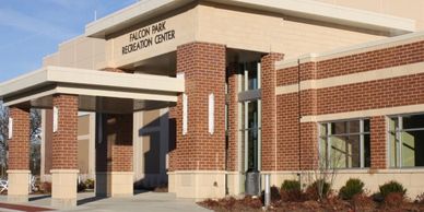 Falcon Park Recreation Center includes an indoor turf field, gymnasium with two basketball courts and three volleyball courts, banquet/meeting rooms, and a 12-lap/mile walking track.